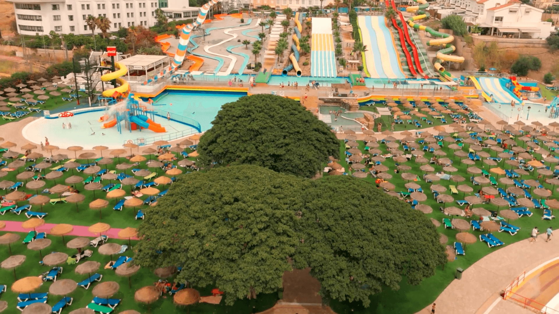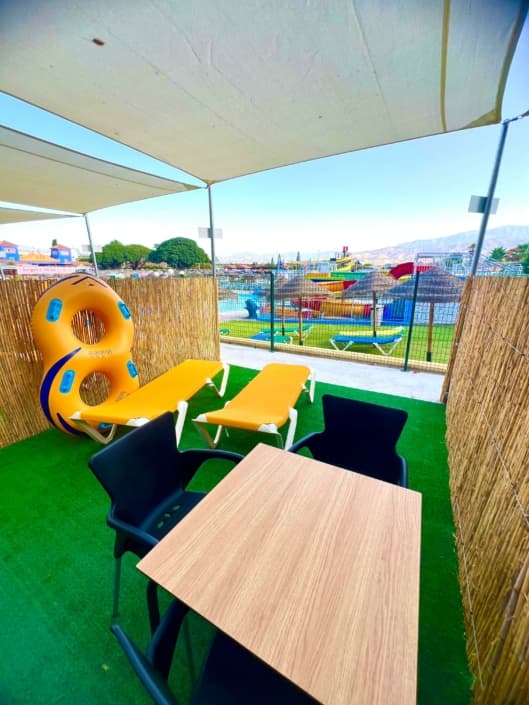 Múltiples zonas de sombra gratuitas en todo el parque. Hamacas en alquiler por 5 €.